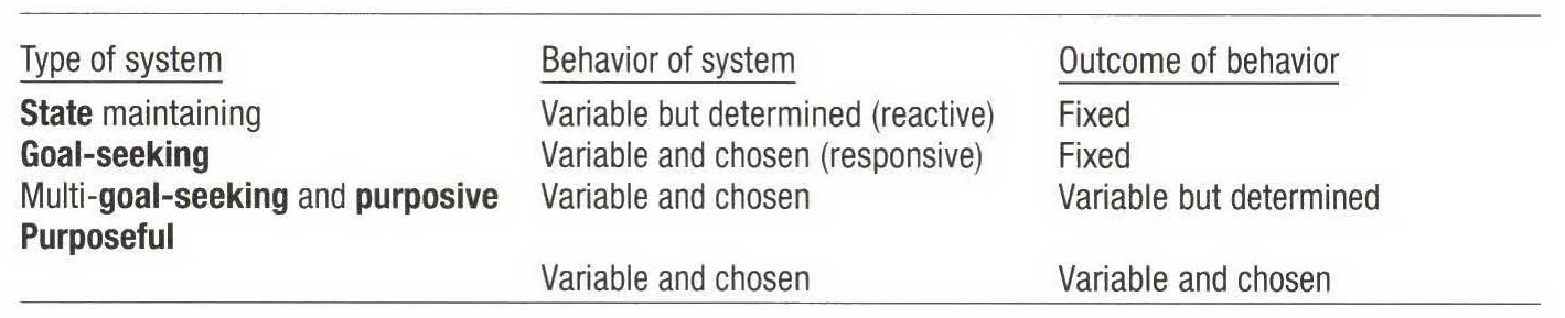 In turn, R.L. ACKOFF establishes the following behavioral classification of systems (1971):