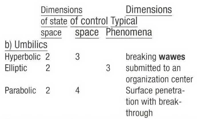 The seven elementary catastrophes (a synthesis of THOM's (1974) and ZEEMAN's (1977) presentations):